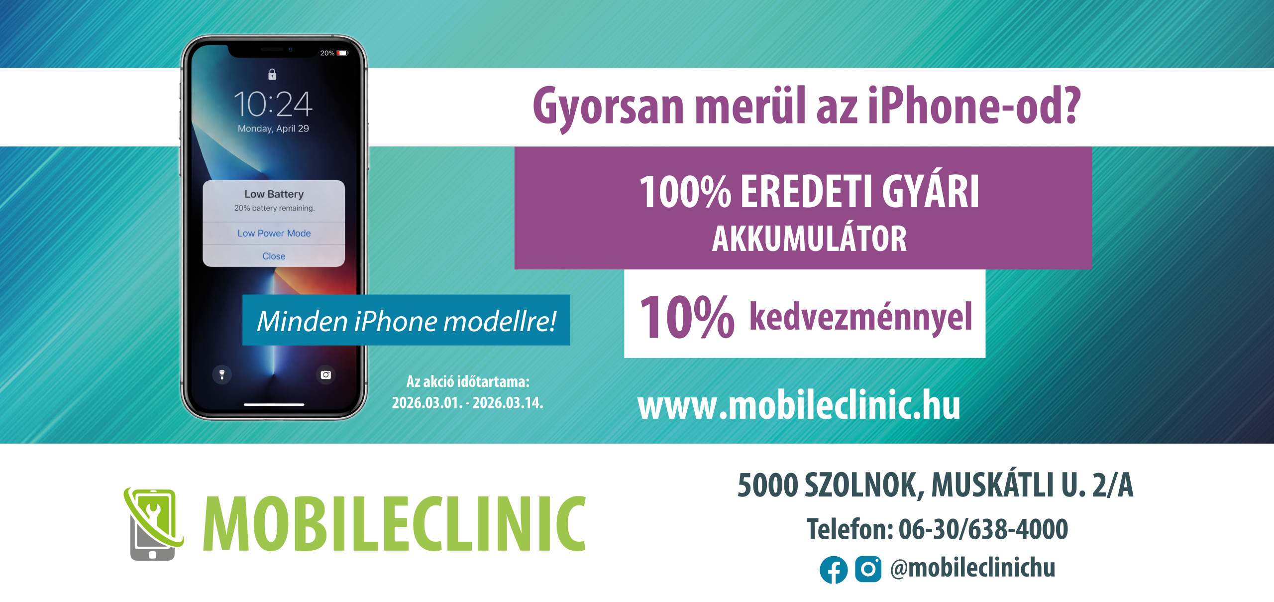 iPhone akkucsere 10% kedvezménnyel, eredeti gyári minőségben! 📱